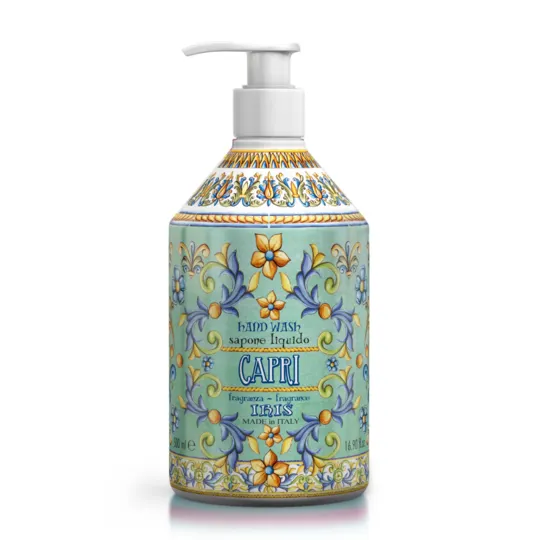 〇Rudy会社概要 ミラノの西アッサーゴにあり、100年の歴史を持つ老舗コスメ工場、ルディプロフィーミが日本の家庭にイタリアの太陽と草花の香りを運んできました。1920年から始まり、今では三代目の三人の孫たち、Giorgio(ジョージオ)、Lorenzo(ロレンゾ)、Cristina(クリスティーナ)がそれぞれの才能を発揮しながら、昔からの伝統を守りつつ、現代の市場にあった新しい商品を生みだしています。 〇Le Maioliche ラ・マヨルカ イタリアのルネサンス時代に発祥した白地に色鮮やかな色彩を施したマヨルカ焼き【マジョルカ焼きとも呼ばれる錫釉陶器(すずゆうとうき)】は、スペインのマヨルカ島を経由してシチリアに入ってきたことでその名が付きました。主にストーリー性を盛り込むことが多い焼き物で、歴史上の出来事や伝説が描かれることが多かったそうです。このイタリアの歴史を担った伝統工芸へのオマージュであり、イタリアの各地域のすばらしさを伝えるモチーフとしてマヨルカ焼きの柄を施したシリーズが、ルディ「ル・マヨルカ」です。 〇Le Maioliche Liquid Soap ル・マヨルカ リキッドソープ(Hand Wash ハンドウォッシュ) オーガニックアロエベラエキス、植物由来グリセリン、ビタミンE誘導体配合の肌に優しいリキッドソープ。アロエの美肌作用とクエン酸のph調整作用により、潤いを適度に残しながら洗い上げます。イタリア各地の特産を表現した柄や香りを施し、爽やかで優雅なアロマをご堪能ください。 ※成分的にボディソープとしてもご利用いただけます。 〇Fragrance-フレグランスの種類- ・Positano Rose ポジターノローズ アマルフィの海岸沿いにあるリゾートとして人気の高い町、ポジターノ。ここポジターノの花々は色鮮やかで香りがよく、特に赤と白のバラが有名です。そのポジターノの幻想的な花々やレモンなどを優艶に描いた柄を施しました。 -Base note- ローズウッド、アンバー -Top note- ダマスクローズ、ローズペタル -Heart note- ゼラニウム、ヴァイオレット、クローヴ、イランイラン ・Mediterranean Herbs メディタラニアンハーブ 太古より、地中海のハーブは調味料や薬として活用されてきました。元は古代ギリシャのテオプラストスにより沢山のハーブの活用法が発見され、ヨーロッパに広がったのです。地中海の様々なハーブのモチーフとマヨルカ焼きの伝統的な表現によって生まれた柄を施しました。 -Base note- ウォームウッド -Top note- ベルガモット、ジンジャー、ユーカリ、オレンジ、レモンピール -Heart note- マートル、タイガーリリー、ジャスミン ・Italian Olive Oil イタリアンオリーブオイル 古イタリアの中で最も高品質で高価格のオリーブはタスカニー産と言われています。そのタスカニー産オリーブの木やたわわに実った実を伝統的な手法で描いた柄を施しました。 -Base note- オリーブ、プレシャスウッド&ベチパー -Top note- ベルガモット、ジンジャー、シダー、ルバーブ -Heart note- ゼラニウム、ホワイトフラワー ・Sicilian Lemon シチリアンレモン オレンジで有名なシチリアですが、実はイタリアのレモンの9割の生産量を誇り、特にメッシーナ地方では、レモンの栽培がオレンジの栽培を遥かに凌駕しています。そのレモンの栽培と伝統を表現した柄を施しました。 -Base note- ベチパー、サンダルウッド、シダーウッド、トンカビーン、ホワイトムスク -Top note- ベルガモット、ホワイティ、レモンピール、グレープフルーツ -Heart note- バーベナ、ジャスミン、ホワイトローズ、プチグレン、トマトリーフ ・Amalfi Peony アマルフィピオニー 春、世界一美しいとされるリゾート地のアマルフィの海岸沿いは、ピオニーやローズ、ブーゲンビリア、シクラメンなど様々な花が咲き誇ります。そのアマルフィの花々しく、香り豊かなイメージの柄を施しました。 -Base note- シダーウッド -Top note- フィグ、ネロリ、ピーチ、グレープフルーツ -Heart note- ホワイトローズ、フィグリーフ ・Sicilian Orange Blossom シチリアンオレンジブロッサム 15世紀、シチリア島はオレンジなどの柑橘類の宝庫となり、多様なオレンジが収穫されるようになりました。島中にオレンジの花が咲き誇り、柑橘類が豊かに育つ様を描き、柄にしたものを施しました。 -Base note- プレシャスウッド -Top note- オレンジ、レモンピール、マンダリンソルベ -Heart note- プチグレン ・Sardinia Sun サルディーニャサン イタリアで2番目に大きいサルディーニャ島は2,000kmにも及ぶ海岸線や古代遺産の宝庫。人気のビーチリゾートを象徴する真っ赤なカラーのデザインです。 -Base note- アンバー、クリーミーサンダルウッド、レバニーズシダー -Top note- オレアンダー、マグノリア、オレンジブロッサム -Heart note- ベルガモット、グリーンレモン、シソ、ジンジャー ・Iris of Capri アイリスオブカプリ 青の洞窟で有名なカプリ。初代ローマ帝国皇帝アウグストゥスが目を付け、二代目皇帝ティベリウスが大豪邸を建て、いまだにマヨルカ焼きが多く残る島。ヒゲアイリスの一種。トール