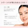 ご使用方法 【1】適量を手にとります。 【2】目もと・口もと・ひたい等の気になるスポットのシワやシミにやさしくなじませます。