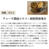 マルトデキストリン(国内製造)、チャーガエキス末、チャーガ破壊末、霊芝細胞破壊末、三種混合直井霊芝エキス(赤霊芝、黄霊芝、白霊芝)、霊芝エキス末、姫マツタケ混合破壊粉末(姫マツタケ実体粉末、姫マツタケ菌糸体及び培養濾液抽出濃縮液、デキストリン)/結晶セルロース、微粒二酸化ケイ素、トレハロース