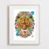 【現代アートポスター】動物 ライオン 模様 イラスト A4(S) フレームセット:無垢 30.4×39.4cm