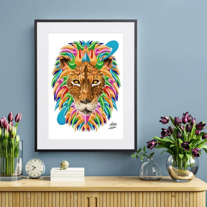 アーティスト -PROFILE- Madblast Hiro(ヒロ) 岐阜県出身。ライブペインター / アーティスト 2021年には大阪府の貝掛中学校の皆様と長さ230mの壁画を制作。 岐阜駅前の繊維問屋街では高さ16mの壁画を制作の他、G-SHOCKやSONY、BETONES等に作品提供を行う。 独自の模様をブロックのように積み上げる表現を突き詰める。 【作品について】 カラフルな色使いはMadblast Hiroの得意とする表現方法の一つ。 迫力あるライオンは今にも飛び出してきそうな、躍動感を感じます。 作品名:Mad Lion 手法:イラスト、デジタル ペーパー:高品質半光沢紙 マットカラー:白 マット*:DXホワイト芯 100%バージンパルプ/PH7・中性紙(2mm厚) ※全てのアートにマットがつきます フレームカラー:黒、白、無垢(3種類から選択) ※マット付のため通常とはフレームサイズが異なる規格となります。 【マット*とは?】 アートポスターの周りに挟んだ厚紙の事。 マットを使わない時に比べ余白により広がりが生まれ、作品の新たな一面を引き出せ作品の見栄えがグッと良くなります。また、額縁のガラス面と作品が直接触れたままにしておくと、くっついて作品を傷つけることがあります。マットを使用することでガラスと作品の間に空間ができ、作品を保護することができます。ブランドコンセプトにより全てのアートにマットがつきます。 ー ファッションのようにアートを ー 私達が掲げるコンセプトです! 毎日着替えるファッションの様に、アートも気軽に飾り変えて欲しい... 一旦飾り終えたアートにも光を当ててほしい... ポスター単体、またはリピートで中身だけのポスターを購入された方に"専用のハンガー"をセットでお届け。 「今までに無い!新しいアートの飾り方を提案」 飾る事がなくなった前のアートをハンガーにかけて洋服と一緒にかけてもらう。 その日の気分や、モチベーションですぐに取り換えられる様に。 もちろん、魅せる収納としても今までにないおすすめの飾り方です。