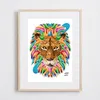 【現代アートポスター】動物 ライオン 模様 イラスト A2(L) フレームセット:無垢 56.1×74.3cm