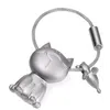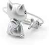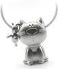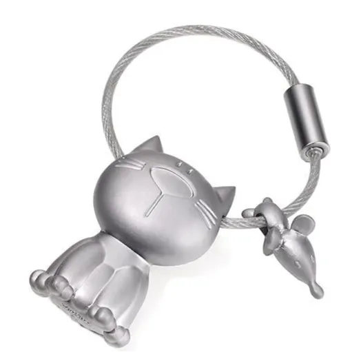 キーホルダー、猫、マウス、鋳造金属、クロムメッキ、マットシルバーカラー