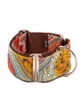 エレガントさと大胆さを兼ね備えた鮮やかなスペインらしいデザインが特徴です。 抽象的な形状とカラフルな色彩が愛犬とのお散歩をさらに楽しく演出します。 ※サイズ、生地の場所によって柄の出方が異なります。 ? マーチンゲールカラー 幅が4cm、5cmと通常よりも広め。頭と首が細長く通常の首輪では抜けてしまうハウンド犬種に、特にぴったりのハーフチョークタイプです。 ハウンド系犬種以外でも幅広くお使い頂けます。頭からかぶせて着用するので、頭のサイズも必ずご確認ください。 ? 素材 裏地:ポリエステル100%リボン(エコテックス認証取得)表地:ポリエステル100%?バックル:特許取得のアルミニウム製サイドリリースDリング
