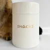 加藤製作所×POPPYS HOUSE ーブリキ製オリジナルおやつ缶ー 商品名 |ブリキ製オリジナルおやつ缶 Lサイズ『snacks』 素材  |ブリキ板 重さ  |172g 容量  |500g サイズ |W111mm × H155mm カラー |コットンホワイト×ゴールド 生産国 |日本 商品詳細 ━━━━━━ 明治28年創業、120年以上の歴史を持つ老舗茶筒メーカー『加藤製作所』とPOPPYS HOUSEがコラボしたブリキ製オリジナルおやつ缶が登場。 ナチュラルなコットンホワイトに上品なゴールドを纏った癒しモダンなデザイン。 昔ながらの製法で造ったブリキ製オリジナル缶は、一つ一つ職人による手作業で製造してるからこその温かみを感じられる仕上がりになっております。 Lサイズの当品は大容量で高密閉、そして手つきの蓋なので簡単に開け閉めする事ができます。 愛犬愛猫のドライフードやおやつ、ジャーキーを保管したり、ご自身のお菓子やおつまみ、グラノーラ、パスタ、プロテイン、コーヒー豆、茶葉などの食品を保管するのに大変適しております。 また食品以外にも、カトラリー、文房具、日用品を入れるなど、お好きな用途でお使い頂けます。 デザイン、クオリティー、機能性、使い勝手の良さ、全て兼ね備えたブリキ製オリジナルおやつ缶。 日本製の品質の良さ、手作りの温かさをぜひお確かめ下さい。 きっとお気に召して頂けるはずです。 お取り扱い ━━━━━━ ・水分がつくと錆びる恐れがありますので水洗いはしないで下さい。 使い始めは缶の内部を乾いた布で優しく拭いて下さい。 汚れた場合は水分をしっかり絞った布でふき取り、水分が残らないよう蓋をせずによく乾燥させてからお使い下さい。 ・水分を多く含む食品や塩分の多い食品は錆の原因になりますので、保存に適しません。 おつまみ類で塩分の多い食品は直接缶に接触しないよう、ビニール袋等何かに包んだ状態で保存して下さい。 ・完全密封容器ではありませんので、湿気を嫌うものを入れる場合は乾燥剤を入れてご使用下さい。 ・粘着性の高い市販のシール、テープを缶に貼ると、塗料が剥げてしまう恐れがありますのでご注意下さい。 備考 ━━━━━━ ・製品の材料であるブリキは現在食品用の缶詰に利用されているものと同一の素材ですので、食品保存上健康に問題ありません。 ・外蓋と中蓋が二重で湿気をさえぎり光を遮断する構造により、食品を長持ちさせることが可能となっております。 ・缶の蓋にわずかな凹みが生じていることがございますが、缶に塗装を施した後、キリのような道具を使いろくろから缶を移動した際の跡です。 不良ではございませんので、ご了承下さいますようお願い致します。 寄付について ━━━━━━ どんな小さな声も聞き逃さない。世界中の助けを求めている全ての動物を救えるように売上の10%を寄付してます(˘ᵕ˘ )♡