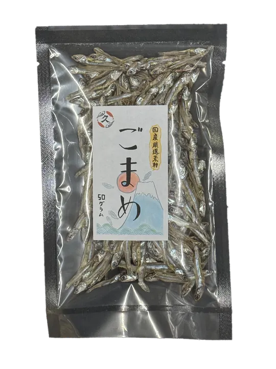 ごまめ 原材料名:片口いわし 内容量:50g 賞味期限:製造より6か月 保存方法:脱酸素剤入り・気密容器入り 製造者:有限会社中野(かつおぶしの中野)