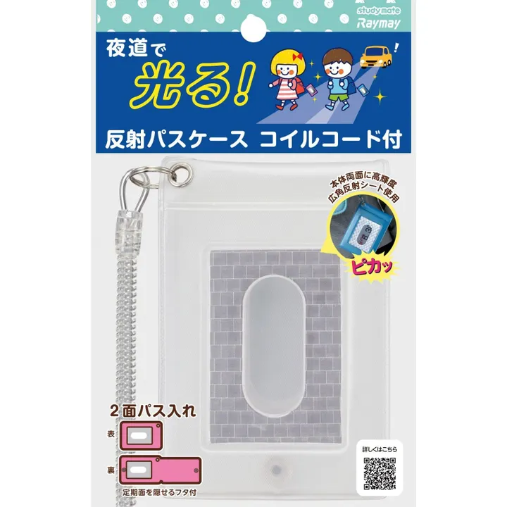 【夜間の交通事故防止に効果的なパスケース】 夜間の交通事故防止に両面のパス窓に車からの視認性に優れた「高輝度広角反射シート」を採用。 定期券などを大切に保管し、ランドセルやバッグに付けたまま改札などにタッチできるコイルコード付き。