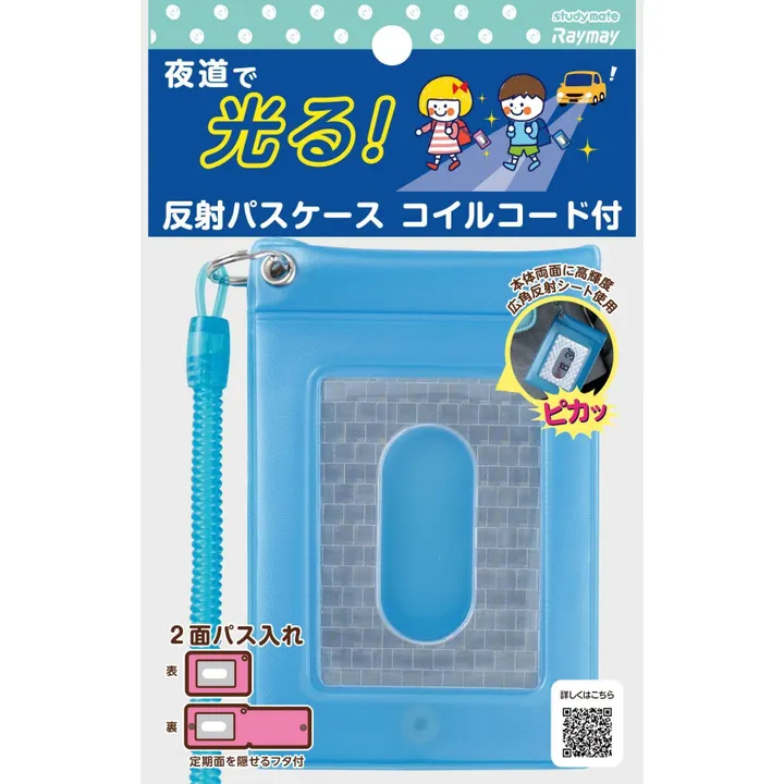 【夜間の交通事故防止に効果的なパスケース】 夜間の交通事故防止に両面のパス窓に車からの視認性に優れた「高輝度広角反射シート」を採用。 定期券などを大切に保管し、ランドセルやバッグに付けたまま改札などにタッチできるコイルコード付き。