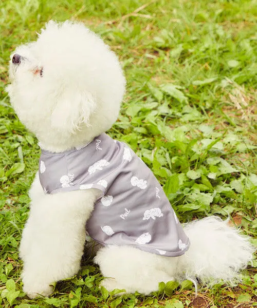 <素材> 吸水速乾・UVカット・2WAYストレッチのソフトな風合いの生地を使用しています。 <デザイン> ビションフリーゼのいろいろなポーズ・表情を入れたオリジナルプリント生地でノースリーブのカットソーを作りました。 形はシンプルなタイプです。 生地がソフトで伸びが良いので 着脱もしやすく、着用時も快適にお使いいただけます。