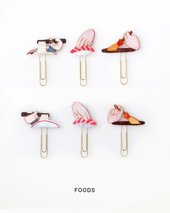 刺繍モチーフ付きクリップです。書類を挟んだり、本や手帳のブックマークとしてお使いいただけます。手帳からちらっと見える、ユニークなモチーフをお楽しみください。プレゼントにも喜ばれます。illustrated by 樋口寛人