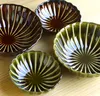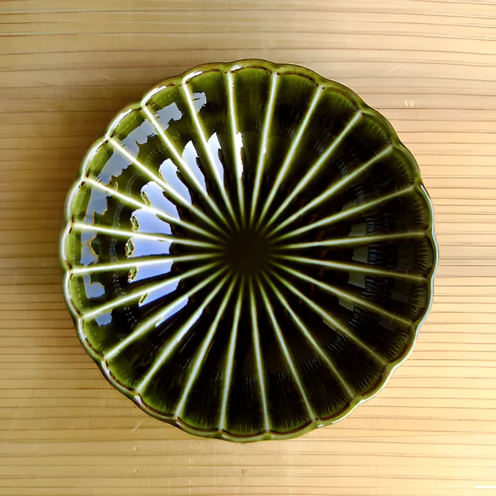 ぎやまん陶はガラスのような透明感ある質感と漆器を思わせる深みのある風合い、そして菊の花をモチーフにした優美なデザインが共存した器です。とろりとした釉薬のかかり具合はまさにガラス細工のような光沢があり華やかな雰囲気をまとっています。見た目の繊細さとは裏腹に、実用性はかなりタフ。硬質で丈夫な磁器の器ですので、温める程度の電子レンジや食洗機も使えます。