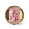 アーモンドひとつひとつを丁寧にキャラメルでコーティングし、オリジナルチョコレートで包み込みました。 キャラメルのカリっとした食感がアーモンドの香ばしさを引き立てる、手がとまらないおいしさです。