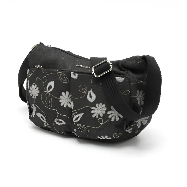前面のポケット部分にデニム地の花柄をあしらったショルダーバッグ。シンプルですがポケットが沢山あり収納力や使い勝手抜群です◎開口タイプ/ファスナー式■ポケット/(内側)ファスナー×1、オープン×2(外側)ファスナー1、オープン×2両脇オープンポケット各1
