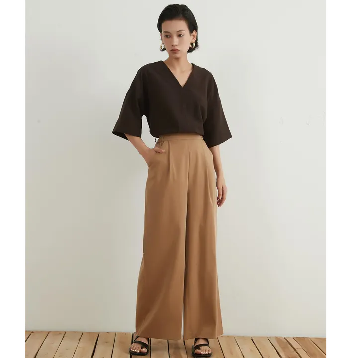 KNNP313ワイドレッグタックイージーパンツ KHAKI/M