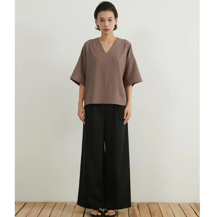 KNNP313ワイドレッグタックイージーパンツ BLACK/M