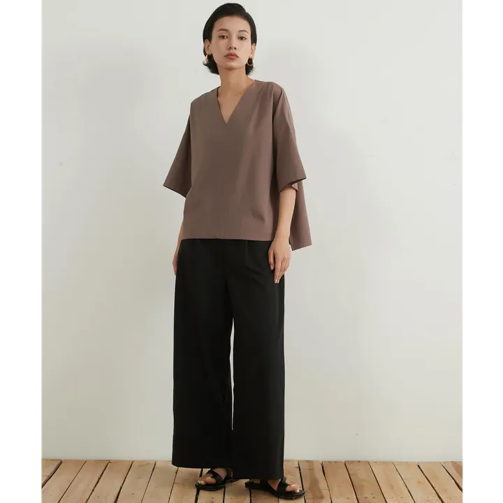 KNNP313ワイドレッグタックイージーパンツ BLACK/S