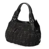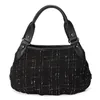黒のツイード素材のハンドバッグです。モノトーンな色合いが、どんなシチュエーションにもあいます♪■開口タイプ/ファスナー式■ポケット/(内側)ファスナー×1、オープン×2(外側)前後マグネット×各1