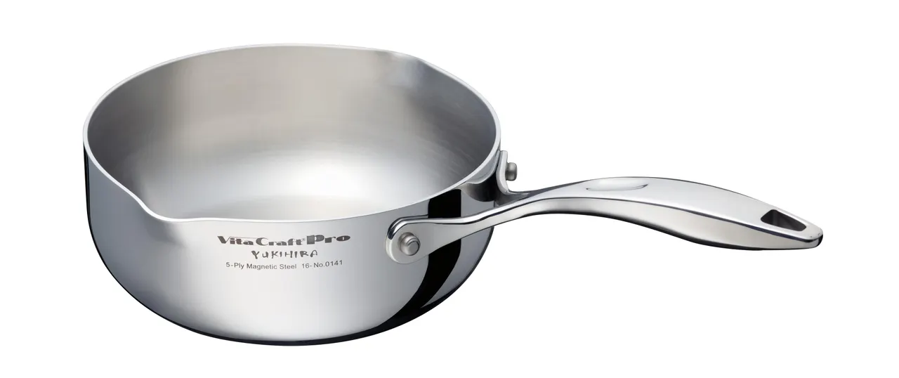 全面5層構造。さっと火を通したり、小回りのきくお鍋です。注ぎ口が2箇所について使いやすく、便利です。