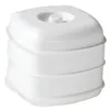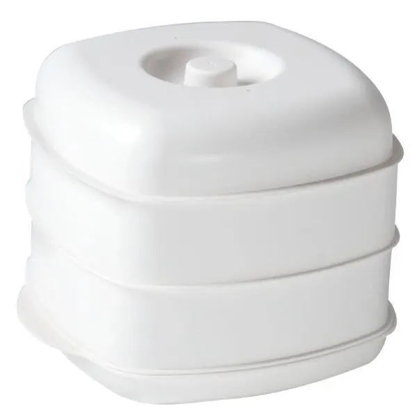 レンジでかんたん 二品同時に蒸し料理 使い方はかんたん 食材とお湯を入れてレンジでチン♪ コンパクトサイズの2段せいろで 温野菜と肉まん、蒸し鶏と冷凍ご飯など、 二品同時の調理ができる優れモノ。 セイロで蒸気が循環して、ふっくらジューシーに仕上げます。