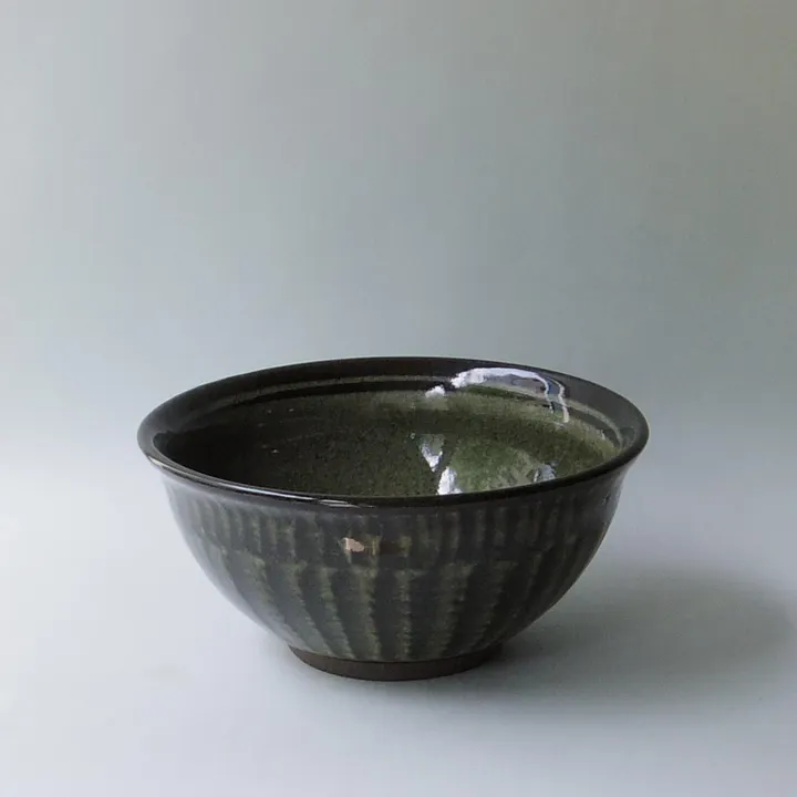 MINO DONBURIのために作られた正陶苑のどんぶり。落ち着いた深みのある緑の釉薬と、二段に施された刷毛目は職人の手仕事にあふれています。外側に少し反った口縁は、汁が飲みやすいようにとの当主の心配りがされています。蕎麦好きにおすすめしたいどんぶりです。 ■正陶苑 土岐市駄知町の孤独な道を進んだ場所に佇む正陶苑。 一点一点作られる、正陶苑の代名詞スリップウェアは美濃焼では珍しい技法です。当主の経験と感性・探究心により、土と釉薬・技法を巧みに操り作られる者たち、現代の暮らしにそっと寄り添うものばかりです。