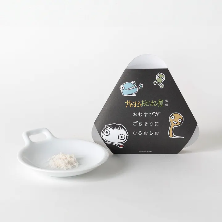 「旅するおむすび屋」菅本香菜さん監修。豊かな自然が残る山口県油谷湾でつくられるミネラルたっぷりで滋味深い海塩を、食物繊維が豊富なスーパーフード「アカモク」と一緒に焚き上げました。もちろん化学調味料は無添加。さらに燻製塩も混ぜ合わせることで”まるでかまどで炊いたような香ばしい味わい”です。 【パッケージ】 ・となりのおにぎり君 海苔 スタジオジブリ鈴木敏夫さんによって描かれた「となりのおにぎり君」を全体にあしらったokawari TOKYO限定のデザインです。 【内容量】 65g 【全成分】 海水(山口県)、アカモク 【サイズ】 高さ120mm×幅130mm×奥行き20mm 【賞味期限】 なし