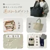 シンプルに使いやすさを追求した撥水トートバッグ 持つ人のことをイメージし、機能性にこだわった 撥水性抜群の生地を採用 小物などを入れておける内ポケットや、 バッグチャームを付けられるDカンフックなど 普段使いしやすい工夫もいっぱい! また、サイドのスナップボタンを留めれば、 荷物が少ないときや近所へのおでかけにぴったりなサイズに。 専用の不織布を使いひとつひとつ梱包しているので、 ギフトやプレゼントとしてもおすすめです。