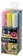 ブラックボード、ホワイトボード、ガラスなどに筆記可能なボードマーカーです。 特大文字や広い面の塗りつぶしに最適なサイズです。 あざやかな発色で退色しにくい顔料インクを使用しており、長時間の展示でも色をキレイに保ちます。 柔らかい布やティッシュにみずを含ませ、水拭きするだけで簡単に消字可能です。 乾くと乾拭きでは落ちなくなるため、書いたものがこすれずキレイな状態で掲示できます。 完全に乾いた状態であれば少しの雨でもインクが流れ落ちることはありません。