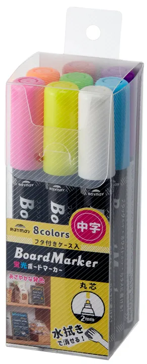 【水拭きで消せる】 蛍光ボードマーカーセット 中字 8本パック