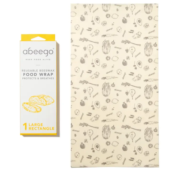 ※本国でのブランド終了に伴い、在庫限り販売終了となります。 【ラージ レクタングル 1枚】 フランスパンやセロリの束をそのまま保存するのにぴったりな、大きいサイズ。 バットやお鍋の蓋にもどうぞ。 長方形のレクタングルシリーズは、袋状にしてバスケットのようにして使用することもできます(画像6枚目参照) \\ ナチュラルでサステイナブルなabeegoのビーズワックスラップを使用して、              健康的で地球にも優しい食生活を送りませんか? // 【100%天然素材のみで作られた新しいかたちの食品保存用のラップ】 ”生きている食べ物の摂取=リビングフード※“が注目される中、 その保存方法を巡り、ラップされた食材に呼吸をさせることができ、 また健康的で地球に優しい保存方法が無いかと考え出されました! ※野菜や果物等の生きている酵素や栄養素を積極的に取り入れる、世界で注目されている食事法 生地を使うことで、一般的な使い捨てのラップフィルムにはない、程よい通気性を保ち、 ミツロウやホホバオイルの天然の保湿性と抗菌性により、包んだ食品の鮮度を長持ちさせます。 その結果、食品に含まれる栄養素だけでなく、 その栄養素を身体に吸収し消化・代謝を促すために不可欠な酵素の持ちも、各段に良くなるのです。 使い方もいたって、シンプル。 冷水で手洗い後、乾かしていただくだけ! 身近なところから、「シングルユース=使い捨て」を減らしていきませんか? ――――――――――――――――― こんな方にオススメ! ☑環境問題に関心の高い方 →このビーズワックスラップを使用し、食品の持ちが良くなる事で、フードロス削減にも一役買います。冷水での手洗いで、約1年ほど繰り返し使用可能です。また最後は、土に還し堆肥にすることも出来ます。 ☑エコやサステナブルな生活をこれから始めたい方 →abeegoのビーズワックスラップを使用することで、ラップフィルムゴミを減らすことが出来ます。お手入れや保管も容易なので、毎日の生活にすぐに取り入れられます◎ ☑健康に配慮されている方 →包んだ食品の鮮度を長持ちさせ、食品に含まれる栄養素と酵素の持ちが格段に良くなります。 ☑大切な方へのプレゼントに ―――――――――――――――――
