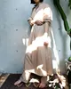 モデル身長163cm アースカラーのグレイッシュベージュです。 *モニターの発色により、実際の色と異なって見える場合があります。