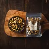 クリスピーなカシューナッツに気仙沼の黒バラ海苔と牡蠣醤油の味わい。 醤油と海苔という日本人のソウルフードに、優しい甘みとクリスピーな食感のカシューナッツの組み合わせが 絶妙なバランスです。 牡蠣醤油の旨み、海苔の濃厚な香りはクセになる味わい。