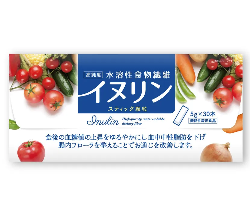 1) この商品で何ができるのか/どんな商品なのか(製品概要) 区分:機能性表示食品(届出番号:I1201) 形状:個包装顆粒(5 g/包 × 30包) 機能性関与成分:イヌリン 届出表示の要旨:本品にはイヌリンが含まれています。イヌリンは食後の血糖値の上昇を緩やかにする、血中中性脂肪を低下させる、ビフィズス菌を増やし腸内フローラを整えてお通じを改善しおなかの調子を整える機能が報告されています。 特長 高純度イヌリン(94.7%)を溶けやすい顆粒に加工し、持ち運びやすいスティックに個包装 無味無臭に近く、飲料・食品へ容易に混和 受賞歴:モンドセレクション最高金賞/国際最高品質賞(5年連続) 医師監修体制あり 2) どうしてこの商品が誕生したのか 継続摂取を促すため、外出時=スティック、家庭=大容量粉末と使い分け可能な携帯性と利便性を強化。 粉末タイプの成分・純度はそのままに顆粒化(分散性向上)し、飲料・料理へのダマ抑制と計量不要を実現。 3) 使うシーンの明示/導入メリット 想定販路:ドラッグストア、量販、専門店、EC、ふるさと納税 等 棚割/訴求軸:腸活・プレバイオティクス/糖・脂質ケア/機能性表示食品 導入メリット 1包=5 g(食物繊維4.5 g)の定量化で接客・リピート設計が容易 携帯個包装によりトライアル喚起と外出時摂取の定着を両立 届出文言の定型運用が可能(店頭・ECの表記整備が簡便) 4) お勧めの使い方 摂取目安:1日 1~3包を目安に、飲料(お茶・コーヒー・牛乳・ヨーグルト等)や料理(味噌汁・煮物・炊飯時の加水など)に溶かして摂取。 摂取方法例:そのまま飲料に入れてよくかき混ぜる/料理に仕込み時に加える。 表示上の注意(機能性表示食品の一般様式): 疾病の診断、治療、予防を目的としたものではありません。 多量摂取により疾病が治癒したり、より健康が増進するものではありません。 体質・体調によりまれに合わない場合があります。薬剤服用中の方は医師等にご相談ください。 販促表現の留意:レビュー・体験談の断定、**「劇的」「テレビで大評判」**等の煽情表現、**比較優位(○倍)**の使用は不可。 届出表示の範囲で運用してください。 5) どんな人におすすめなのか 腸内環境・お通じのリズムに配慮したい層 食後血糖・中性脂肪に配慮したい層 味を変えずに日常の食事へ取り入れたい層 ※個人差があり、効果効能の断定は不可。