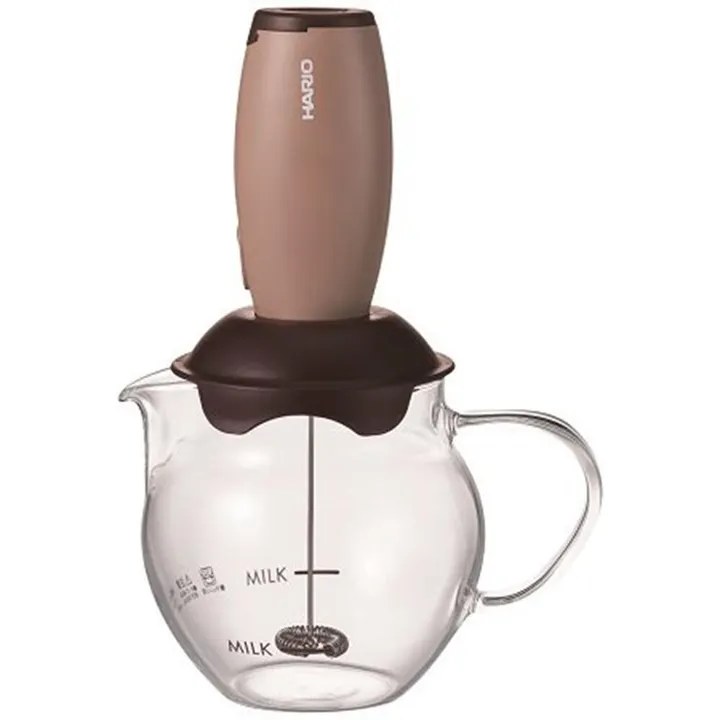 電子レンジで牛乳を40~60℃に温めます。目安は500Wで約50~60秒、600Wで約40~50秒。少し傾けスイッチを押し、30~40秒程牛乳を泡立てます。カプチーノ・カフェラテ用のキメ細かくなめらかな泡立ちミルクができあがります。