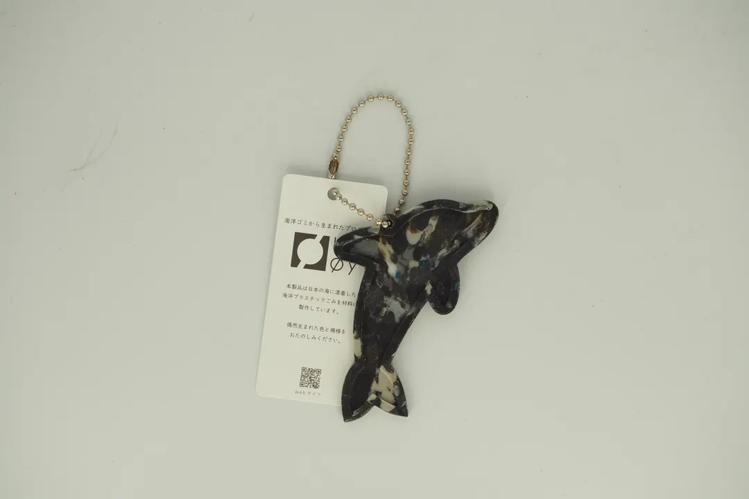 イルカの形のキーホルダーです。 buoyの製品は全て日本各地で回収された海洋プラスチックごみを材料に作っています。着色などの加工を加えず、偶然海岸に漂着した色味でできています。 明るい発色が特徴のプラスチックですが、複数の色が交じり合うことでちょっと有機的なモザイク模様が特徴です。 製品にはひとつひとつゴミの漂着地域が明記されています。日本で起きている海洋ごみの問題をリアルに感じることができます。 また、商品に添付されているQRコードを読み込むとそれぞれの回収を行ったビーチクリーン団体さんの情報を見ることができます。 ------------------------------------------------------------------- 海洋プラスチックごみを材料に変える独自技術buoyの特徴 (buoyは海洋プラスチックごみ素材使用を前提にした株式会社テクノラボの独自技術により成形しています。株式会社テクノラボは本技術において特許取得済み) ◆材料を分けないで成形するため生まれる独自の模様 材料はすべて着色せず海洋ごみの色を活かして成形しています。偶然生まれる色と模様は回収された漂着ごみによって決まります。 ◆製品の重さが海洋ごみの重さ 製品をコーティングしているフィルム以外、混ぜ物などせず海洋ごみでできているので製品の重みから海洋ごみ問題を感じられます。 ◆製品にすべて材料の漂着地を明記 buoyは日本各地のビーチクリーンボランティアや企業の方から材料を提供していただいています。これらの材料は時期と地域を分けて管理され、製品にはすべて材料産地のシールを貼り販売しています。 buoyの材料産地をきっかけに回収された地域のことを知ってほしいとの思いからbuoyでは団体様の紹介ページを作成しています。 http://www.techno-labo.com/rebirth/partner/ -------------------------------------------------------------------