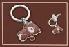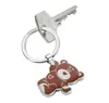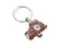 キーホルダー、ハート付きテディベア、キャストメタル、エナメル、シャイニーブラウン/シルバーカラー