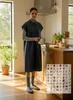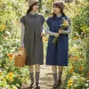 多ボタンピーチスキンAラインタックチュニックワンピース BLUE-L