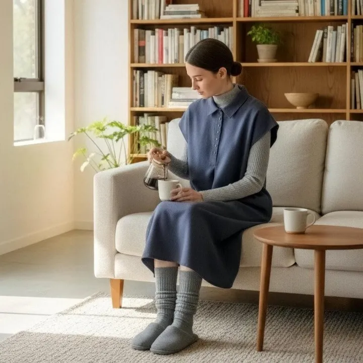 【クラシカルデザイン ピーチスキン】上品な襟元と優美なAラインシルエット。レイヤード次第でロングシーズン着回しが効く、女性らしさを引き立てるノースリーブチュニックワンピースです。 1. デザインの特徴とシルエット クラシカルな襟元と多ボタン:小ぶりなシャツ襟と可愛く並んだボタンが、品のあるクラシカルな印象を与えます。顔周りをすっきりと見せ、上品な雰囲気を演出します。 体型カバーも叶えるAライン:前立て下のタックから裾に向かって広がる美しいAラインシルエット。体を締め付けず、女性らしい優美なドレープを生み出し、気になる体型も自然にカバーします。 着回し力が高い絶妙な丈感:ひざ下の丈感は、ワンピースとしても、パンツやレギンスを合わせたチュニックとしてもバランス良く決まります。幅広い身長の方にコーディネートしやすい万能丈です。 2. 生地の特徴と魅力 桃のような肌触り ピーチスキン:表面はまるで桃の皮のような柔らかな微起毛感、ピーチスキンが特徴。見た目にも温かみがあり、優しい肌触りを提供します。 ストレスなく伸びやかな着心地:ポリエステル100%素材で、ストレスなく伸びやかに着られるため、日常使いに最適です。動きやすさと快適さを両立しています。 お手入れ簡単なナチュラルなシワ感:自然なシワ感があるため、お手入れが簡単で、かしこまりすぎないナチュラルでこなれた雰囲気を演出します。 3. コーディネート提案 ノースリーブだからこそ可能になる多彩なレイヤードスタイル:ノースリーブデザインは、インナーの袖のデザインを選ばず、薄手のニットやタートルネックとの重ね着など、季節に応じて多彩なレイヤードを楽しむことを可能にします。 ナチュラルスタイル:薄手のタートルネックニットとのレイヤードで、ほっこり暖かな牧歌的コーデに。 大人カジュアルスタイル:ボーダー柄カットソーと細身デニムと合わせて、普段使いしやすい大人のリラックスカジュアルに。 フェミニンきれいめスタイル:袖ボリュームブラウスとパンプスで、オフィスやちょっとしたお出かけにも対応できる上品な着こなしに。 単位(cm)モデル身長160cm サイズ M / L  M:身丈 100 バスト 108 裄丈 34 L:身丈 100 バスト 114 裄丈 35 素材:ポリエステル 100% 中国製 透け感:なし 生地の厚さ:普通 光沢感:なし 裏地:なし 家庭洗濯:可能 【注意点】 ※撮影商品はサンプルの為、実際の仕様と異なる場合がございます。 ※画像の商品は光の照射や角度、お使いのモニター環境により、実物と色味が異なる場合がございます。スタジオ物撮りの画像が実物の色味に一番近くなっております。 ※予約商品の場合、お届け予定はあくまでも目安となります。 生産の都合上、お届け時期がずれる場合がございますので、あらかじめご了承ください。 ※表記サイズは商品の実寸です。 ※布製品の特性上、サイズ表の実寸法は多少の誤差が生じる場合がございますので、予めご了承ください。
