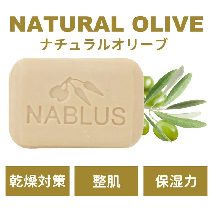 ナーブルスソープは、パレスチナに1000年以上続く伝統の石鹸です。地元のオリーブオイルを使い、職人が一つひとつ丁寧に作り上げています。 しかし、その背景には厳しい現実があります。入植者によるオリーブ畑の破壊や、生活基盤への圧力で、多くの農家や職人たちが苦境に立たされています。 それでも彼らは「伝統を守り続けたい」という思いで石鹸を作り続けているのです。 この石鹸を購入することは、ただのスキンケアではなく、彼らの生活を支え、文化と平和を未来へ繋ぐエシカルな選択になります。 自然素材で肌にやさしく、環境にも人にも配慮された「本物の石鹸」。 ぜひ日々の暮らしに取り入れていただければ幸いです。 【NABLUS SOAP / ナーブルスソープ】無添加 完全オーガニック石鹸(ナチュラルオリーブ)保湿環境・乾燥対策 全ての肌タイプに適したナチュラルオリーブオイルは、定番のナーブルスソープです。100%の天然ヴァージンオリーブオイルが、お肌に潤いを与え、肌環境を整えます。皮膚を清浄にし、キメを整えます。天然成分のオリーブオイルがお肌の乾燥を防ぎ、肌を滑らかにします。 <ナーブルスソープの歴史> 10世紀にパレスチナのナーブルス地方で女性達が家庭用に石鹸を作ったのが始まり。その後、ベドウィン族を経て英国エリザベス女王1世に伝わり、美容効果を絶賛。英国から瞬く間にヨーロッパの女性に広がりました。1611年、石鹸一族と呼ばれるトゥベレ家がナーブルスソープカンパニーを設立し、現在もトゥベレ家によって、石鹸づくりの秘伝レシピが継承されています。 <ナーブルスソープ(ナチュラルオリーブ)の効果> ・ お肌の保湿環境を整える ・ 乾燥肌対策 ・ 保湿対策 <おすすめの使い方> ・ 洗顔 ・ ボディー洗浄 ・ シェービング ・ 洗髪 <こんな方におすすめ> ・ 肌荒れに悩む方 ・ 乾燥肌に悩む方 ・ 敏感肌の方 ・ ナチュラル製品を好む方 <何が違う? ナーブルスソープのオーガニック石鹸> ・ 最も厳格と言われるフランスのオーガニック認証「エコサート (ECOCERT)」取得(ORGANIC COSMETICS および NATURAL COSMETICS認証を取得) ・ ハラール (HALAL)認証取得 ・ クルエルティーフリー(動物実験を一切行いません) ・ 肌質を問わないオーガニック石鹸 <肌タイプ> 乾燥肌・敏感肌・普通肌・混合肌・年齢肌