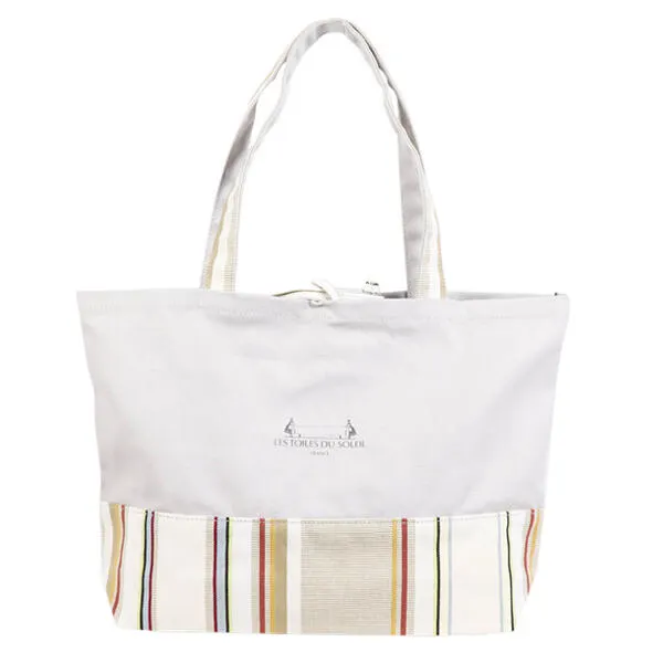 LES TOILES DU SOLEILで長年愛された「木底トート」からインスピレーションを受けてリバイバルされたバッグが、虹を意味する「Arc-en-Ciel(アルカンシエル)」シリーズとして登場! カラフルで上品なトートバッグは、口元のリボンデザインが可愛らしいアクセントになり、デイリーコーデに華やかさをプラスします。 ボディカラーはソレイユストライプに合わせたポップなコンビカラーで展開。 さらに、少し長めに設計したハンドルにより、手持ちにも肩掛けにも対応できる2WAY仕様です。 A4サイズやペットボトルも入るサイズ感で、通勤・通学・お出かけにぴったり。 カジュアルすぎず、どんなスタイルにも馴染む「大人のデイリートート」です。 ※底板は付属しておりません。 ※生地の使用箇所により、柄の位置が掲載写真と異なる場合がございます。 《ブランド紹介》 レ・トワール・デュ・ソレイユは、「太陽の生地」の名の通り、南フランスの村「サン ロラン デュ セルダン」で1860年に生まれた“伝統織物ブランド”です。 株式LTDS Japonは、日本の輸入総代理店として、レ・トワール・デュ・ソレイユの生地の輸入、バッグ・ファッション小物類の企画・生産、生地の販売を行っています。