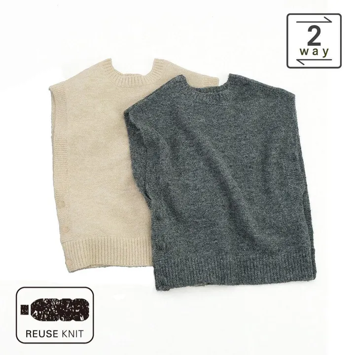 リューズニット ショート丈トップスにもなる2WAYベスト GY
