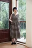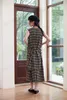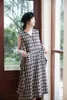 KNSO343ノースリーブチェックワンピース with ポケット太幅ベルトデザイン BLACK/FREE