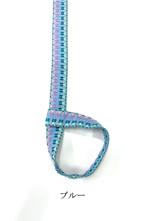 カラフルな刺繍が目を引く幾何学模様のチロリアンテープで作られたヨガマットストラップ。 コンパクトなので使わないときも荷物にならないのが嬉しいポイント。 選べる4つのカラー展開で、マットのデザインとの組み合わせも楽しめます。 マットを持ち歩くときもお気に入りの1本を選べば、より気分が上がります。