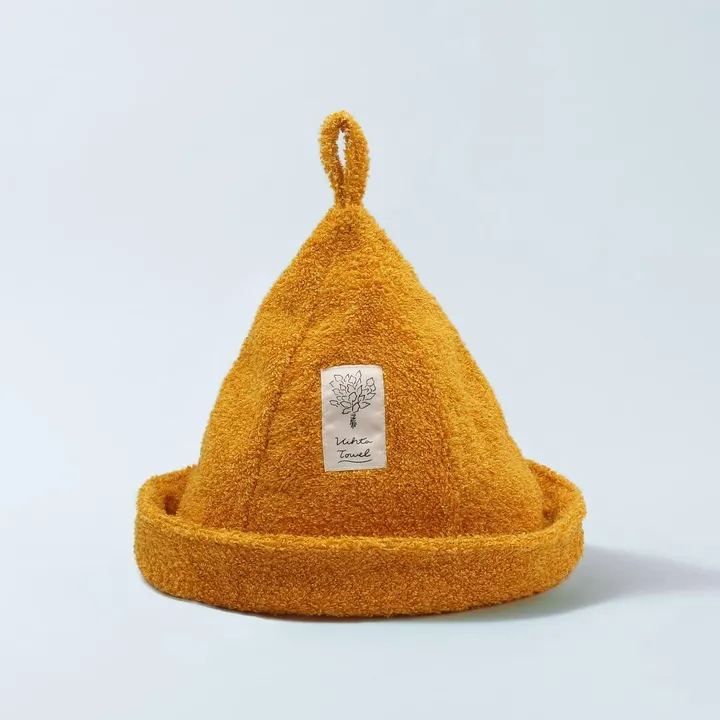 🍀フィンランド政府観光局コンセプト監修 今治のタオル職人が白樺でつくったサウナハット フィンランドの自然を着想に白樺の糸でつくったサウナハットです。サウナの中で視界を絶って穏やかに過ごしてもらえるように少し大きめのサイズで製作。ハットのつばを折ることで好みに合せて視界を調整することができます。 浴場内にあるフックにかけられるように頭頂部にはループを。ループもヴィヒタタオルの生地100%です。ステッチのかけ方を工夫し、丈夫さとかわいらしさを両立しました。 付属のパッケージは防水仕様のため水気を含んだサウナハットでもカバンを濡らすことなく持ち運びいただけます。 コットン糸とレーヨン糸の染まり具合が異なることで、タオル生地は微妙に違う2つの色彩を備えています。 2色の斑の美しさを追い求め、ヴィヒタをはじめとしたフィンランドの豊かな自然をで表現しました。 フィンランド政府観光局監修のもと、フィンランド語で名付けられた全4色のカラー展開です。 ・ヴィヒタ(緑):白樺の若枝を束ねたもの、初夏や春の象徴。 ・カーモス(紺):フィンランドの冬の象徴でもある極夜、日の登らない昼。 ・ヤルヴィ(水色):湖。フィンランドには約18万8000もの湖がある、湖大国です。 ・ヴィティ(白色):ふかふかの雪。フィンランド語では雪の表現が多様にあり、その中でも新雪を意味しています。 🍀フィンランドの自然からヴィヒタタオルは生まれました 2000年以上、生活に「サウナ」が根付き、自然と共生する国として知られるフィンランド。北欧のこの国では、ヴィヒタという白樺の若枝を束ねたものをサウナ室に持ち込み、湿度の高い熱で蒸された室内で森の香りを楽しむ習慣があります。 その香りは、厳しい冬の季節に春の芽吹きに思いを巡らせ、白夜きたる初夏の訪れを祝う象徴とされています。 人々はヴィヒタを通じて自然が醸し出す季節の違いを楽しむのです。 自然や植物に触れ、心が解れる時間を日常でももっと増やしたいという思いの元、フィンランドの自然と習慣をヒントに、ヴィヒタタオルは生まれました。 🍀白樺の繊維で織りなす手触りの良いタオル 肌を拭いた際の心地よい質感を重視しつつ、しぼりやすさと速乾性も考慮したヴィヒタタオルオリジナルの生地。 しっかりと水や汗を吸う吸水性と、植物を意識した、しなやかで実の詰まったタオルの風合いを実現することにこだわりました。 今治の地で職人がタオル織機を使って丁寧に織り上げています。 65%のコットン糸と35%のレーヨン糸から成る生地のうち、レーヨンに白樺の繊維を配合。 ハートウエル独自の糸「サウナヤーン」として紡績会社と協力し完成させました。 暮らしの中で、手触り・肌触りからフィンランドの自然を感じてみてください。