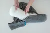 「旅の準備をするように、非日常に備えよう」 旅×備えがテーマのトラベルグッズ。 どんな場面でも快適に過ごせることに思いを込めて、新アイテムを追加しました。 長時間移動などに大活躍のI字型軽量マルチピロー。 首元に巻き付ければネックピローになり、ホールド感はお好みで面ファスナーによって調節可能です。 さらにピロー内に一体型の収納可能な大きめフードも付いていますので、目深にかぶれば周りの目を気にせずリラックスタイムを満喫できます。 伸縮性のある綿生地が心地よく、カバーは取り外して洗濯可能。 よく旅をする方におすすめです。 ↓自由な形状を生かしてこんな使い方もできます! ・楽な姿勢を取りたいとき、お腹、腰回りにあてて。 ・PC作業などで手首が疲れやすいとき、リストピローとして。 ・輪っかにした状態でテーブルに置き、うつ伏せ寝のサポートに。