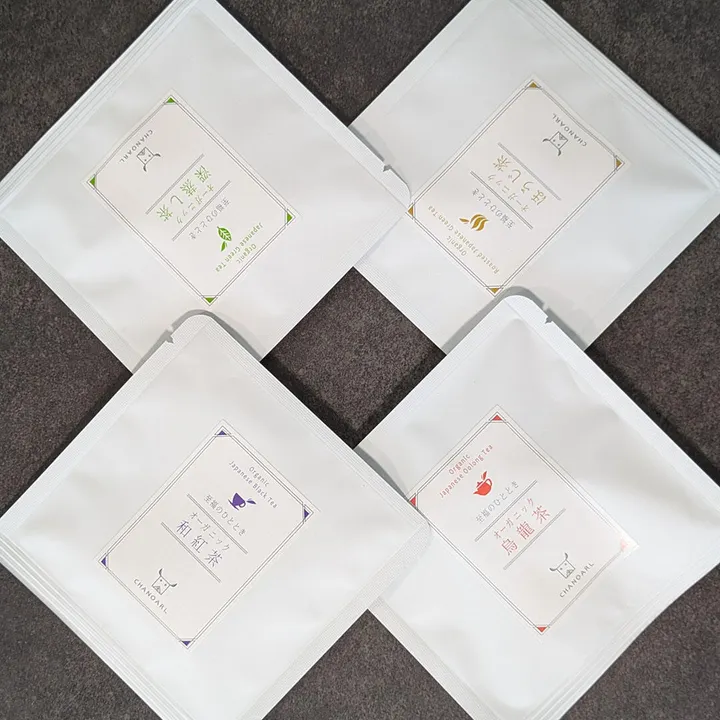安心・安全にこだわった有機JAS認証の国産茶葉のみを使用した、オーガニック日本茶ティーバッグの試飲サンプルをご用意しました。個性豊かな4種の上質な日本茶を1Pずつ個包装にしたアソートセットです。こちらのサンプルは、簡易包装でネコポスもしくはクリックポストにてお届けします。 ----------------- 【至福のひととき オーガニック日本茶ティーバッグ】 上質の国産有機茶葉のみを厳選して、美味しさにこだわり丹念に仕上げたプレミアム日本茶です。爽やかな香りと茶葉本来のまろやかな甘みが特長。シンプルおしゃれなパッケージは贈り物にも好評です。 アソート内容は以下の4種です。 『至福のひとときオーガニック深蒸し茶』 鹿児島産の有機栽培一番茶のみを厳選して、深蒸し製法で仕上げました。爽やかな香りと旨みを引き出した深い緑色が特長。甘みと渋みのバランスが良いワンランク上のオーガニック深蒸し茶です。 『至福のひとときオーガニック和紅茶』 鹿児島産の有機栽培べにふうきを使用。時間をかけてじっくり丁寧に完全発酵させて、華やかな香りと茶葉本来の甘みを引き出しました。そのままストレートでお楽しみいただけるワンランク上の国産紅茶です。 『至福のひとときオーガニックほうじ茶』 京都宇治産の有機茶葉のみを使用して高温で焙煎しました。どこか懐かしい香ばしさとほんのりやさしい甘みが特長。カフェインが少なく口当たりが良いワンランク上の京焙じ茶です。 『至福のひとときオーガニック烏龍茶』 京都宇治産の有機茶葉のみを厳選して、丁寧に半発酵させて華やかな香りとまろやかな甘みを引き出しました。すっきりした香ばしさとやさしい口当たりのワンランク上の国産烏龍茶です。 ----------------- ティーバッグはカラダと環境にやさしい植物由来の素材を使用しています。三角テトラ型ティーバッグの中で茶葉が大きく広がり、急須で淹れたような本格的な味わいを手軽にお楽しみいただけます。贈り物にも好評のシンプルでおしゃれなパッケージは、自分へのご褒美や大切な方へのちょっとしたギフトにもおすすめです。ギフト展開やオーガニック商材導入をお考えの方はぜひ一度お試しください。