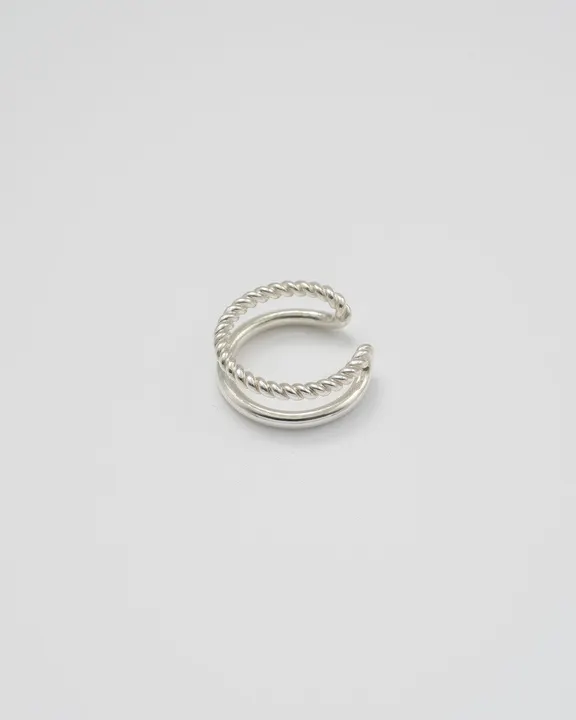 "Duality“ series シンプルなリングと捻られたリングの二連のようなデザイン。 どちらを上にしても着用できるデザインとなっています。 コミュニティごとや関わる人によって変わる人間の多面性を表現しています。 男性・女性ともにご使用していただけるデザインで、 男性はピンキーでの使用がおすすめで、女性はどの指にでも合わせていただけます。ペアリングとしてもおすすめ。 サイズ調整いただけるタイプとなっており、前後1〜2号程度の調整が可能です。
