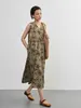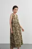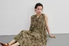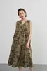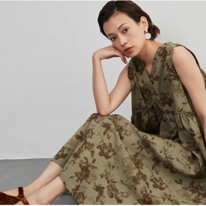 KNXO415-Tシャツやニットと合わせやすいフラワープリント・ノースリーブ・ワンピース OLIVE/FREE