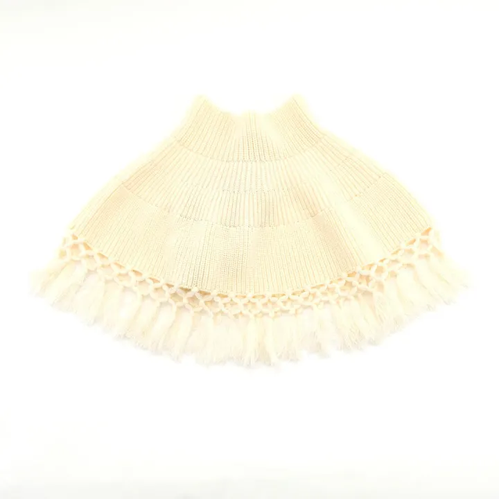 ふんわり優しい着心地 フリンジ付きラウンドポンチョ IV
