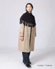 4段リブのケープは、切り替えごとに編み目を増やして、なだらかなラウンド型に仕上げました。肩周りをふんわりと暖かく包んでくれるシルエットです。初秋はシャツなどのトップスやワンピースの上から、もちろんアウターの上に重ねて着用することもできます。一つ一つ手作業で編み付けしたフリンジがシーズンライクな印象に仕上げてくれます。 アクリルはウールに似せて作られた合成繊維で、ふっくらとやわらかく保温性、耐久性が高く、乾きやすさが特徴です。ナイロンはなめらかで摩擦に強く弾力性があるため、アクリルと同様、耐久性にすぐれています。どちらも吸水・吸湿性の低さが弱点ではありますが、吸湿性の高いウールを合わせることで欠点を補った素材になっています。