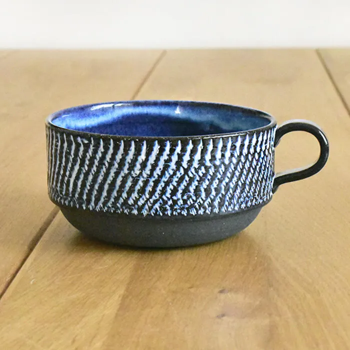 毎日の暮らしに飽きのこないシンプルなデザインのうつわです。 昔からある飛び鉋(とびかんな)風のデザインに、カラフルな色合いをプラス。 伝統とモダンの良いところがミックスされ、素敵なうつわに仕上がりました。 個々で模様の出かたや釉薬のかかり具合が違うのも土もののチャームポイントです。